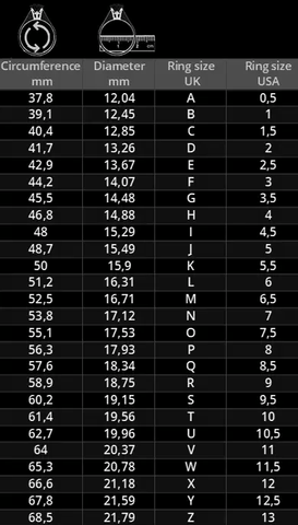 Take an existing ring that fits you perfectly. Place it on a ruler. Measure the inside diameter from one edge to the opposite edge. Ensure you're measuring the widest part, which gives the diameter.Once you have your measurements, you can refer to the following chart to find your ring size: